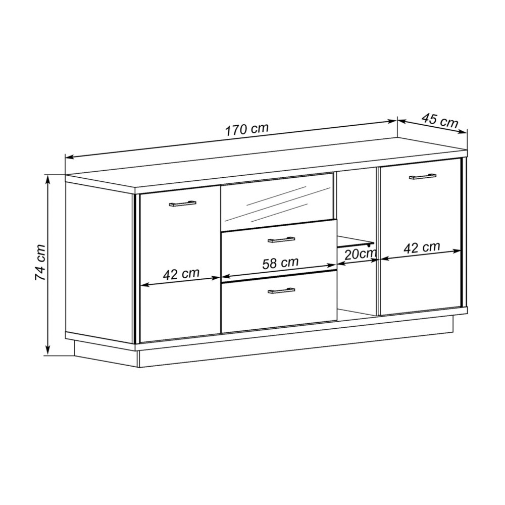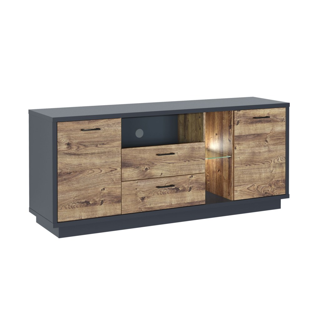 Os Leds integrados adicionam uma iluminação suave, realçando os objetos exibidos na prateleira. Além de ser um suporte para a televisão, a base inclui compartimentos espaçosos para os dispositivos eletrônicos, e outros itens relacionados ao entretenimento.