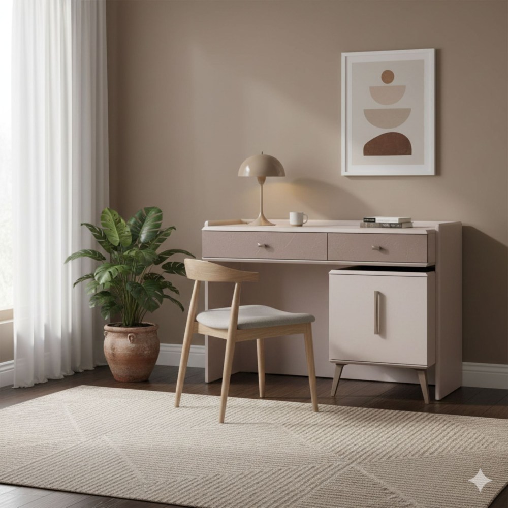 Com seu formato estético e amplo espaço de armazenamento, a Cômoda Lima traz organização e um toque retrô ao seu quarto. Seu acabamento em tom Areia de Zebra e os elegantes detalhes dos puxadores realçam seu design contemporâneo.