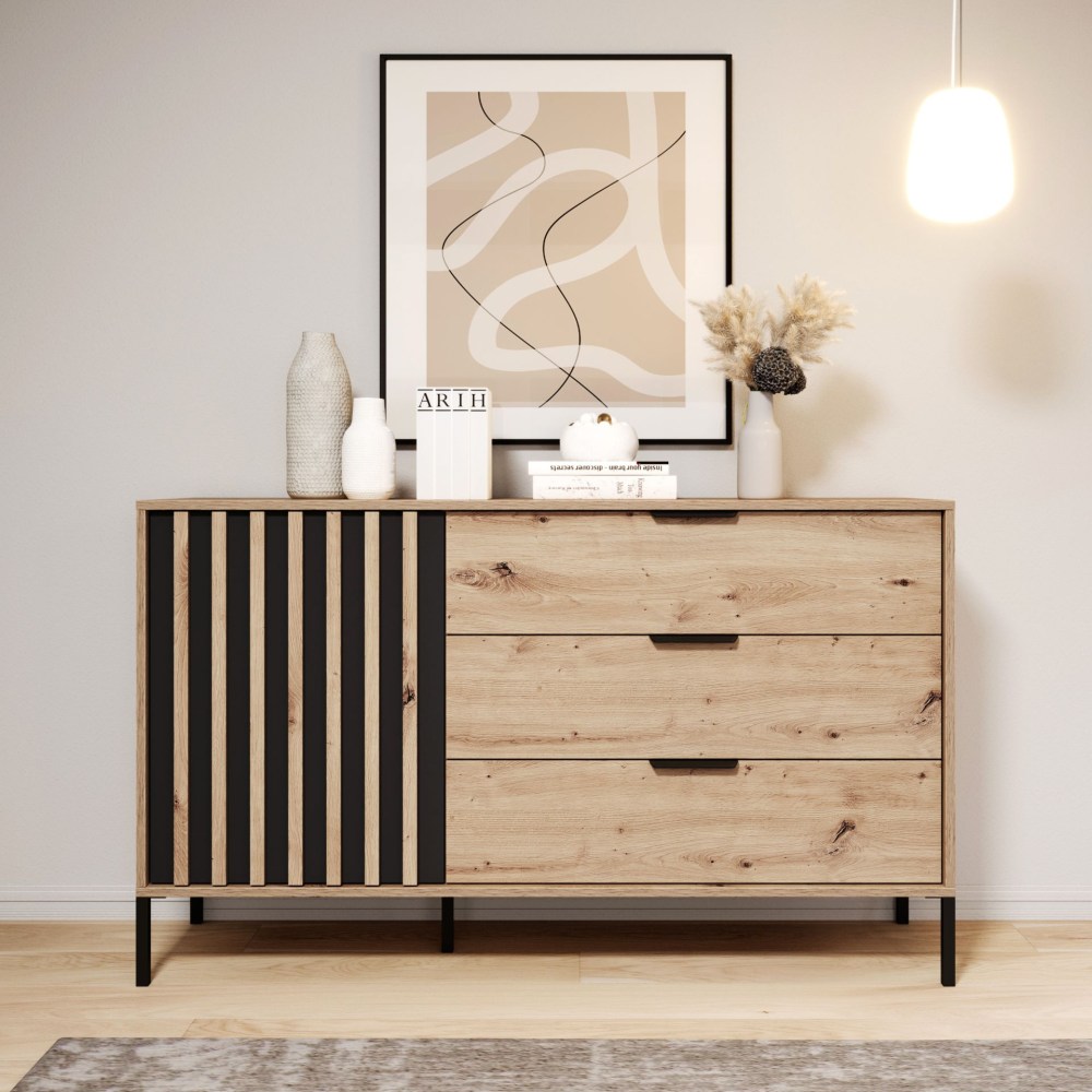 O conjunto TALLY apresenta uma combinação perfeita de tons terrosos suaves — carvalho artesanal e antracite — que confere a qualquer quarto uma sensação aconchegante e natural. As ripas utilizadas nas frentes do guarda-roupa e da cômoda, bem como na cabeceira da cama, adicionam um toque moderno e enfatizam o caráter das peças. Esta coleção é excepcionalmente funcional. Um guarda-roupa espaçoso com um grande espelho, iluminação e gavetas complementa a cômoda espaçosa e a cama confortável, realçada por uma cabeceira estofada e mesas de cabeceira práticas.