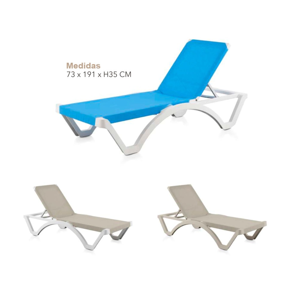 Espreguiçadeira de piscina de resina e textileno, empilhável, com encosto de 4 posições, resistente aos raios UV.