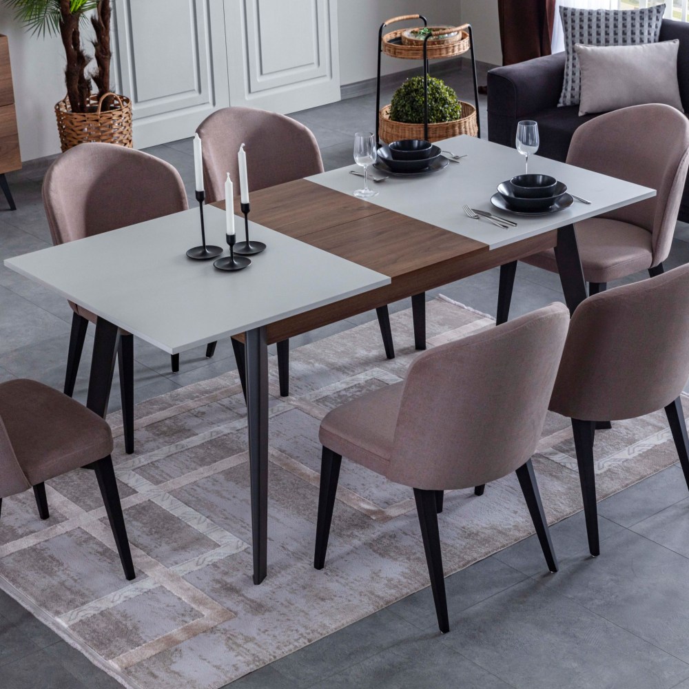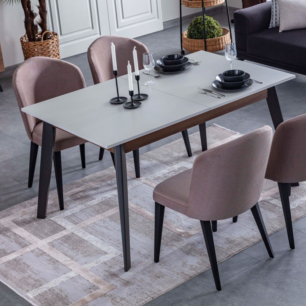 Complementando o ambiente moderno da sua casa, Mayra ajuda a enriquecer as suas mesas graças à sua capacidade de abrir e expandir quando necessário. Graças à sua estrutura preparada com materiais especiais duráveis, traz durabilidade às suas casas sem comprometer a sua elegância. Com a aparência harmoniosa da pedra da lua e da madeira, Mayra traz sinceridade às suas mesas.