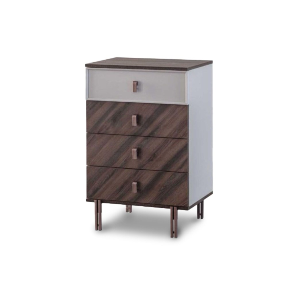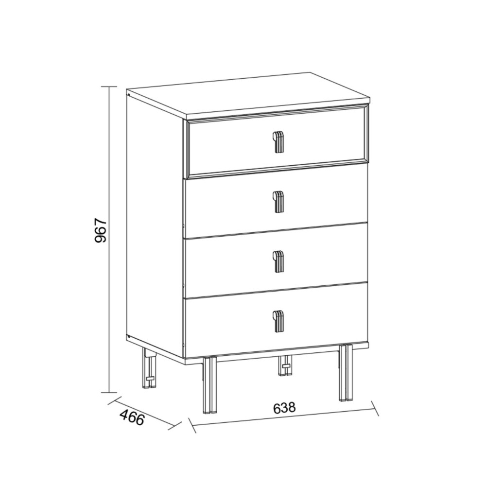 Com sua ampla estrutura de gavetas, o camseiro Merlin oferece a oportunidade de guardar diversos itens em espaços estreitos. Além de sua estrutura robusta e funcional, é a peça que completa a postura nobre do seu quarto com sua combinação de diferentes cores e estilo. detalhes em metal bronze .