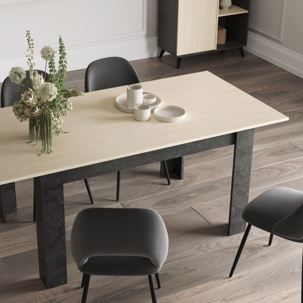 A Mesa de Jantar Kent apresenta um design contemporâneo, combinando linhas elegantes com uma estética moderna. O seu estilo versátil é capaz de aprimorar a beleza da sua sala de jantar, tornando-a mais sofisticada e extensível.