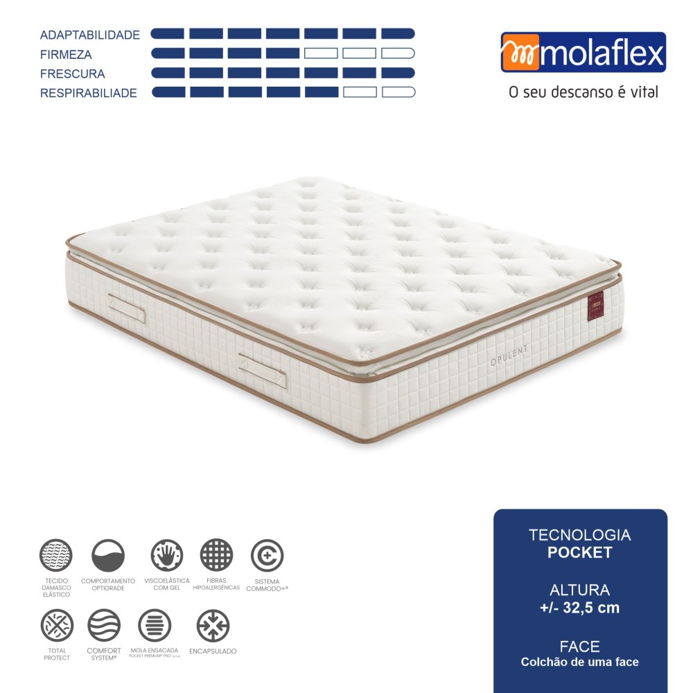 Descubra as principais características do Opulent em termos de conforto, respirabilidade, firmeza e durabilidade.