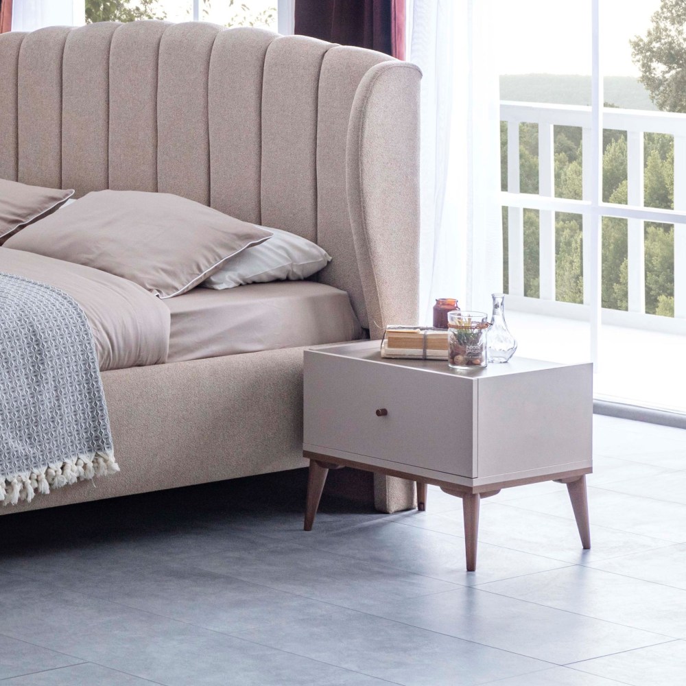 Projetada considerando as áreas de armazenamento que você precisa, a mesa de cabeceira Pastel cria uma área de armazenamento segura para todos os itens que você deseja manter na cabeceira. Além de sua estrutura sólida e funcional, traz a paz da natureza para o seu ambiente com sua distribuição harmoniosa de tons terrosos e detalhes elegantes dos puxadores.