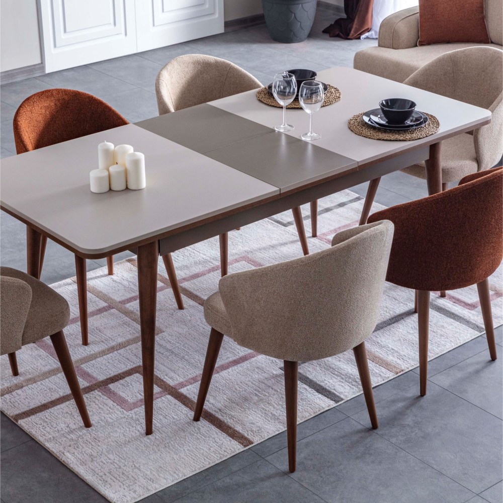 Complementando o ambiente moderno da sua casa, o Pastel ajuda a enriquecer as suas mesas graças à sua capacidade de abrir e expandir quando necessário. Graças à sua estrutura preparada com materiais especiais duráveis, traz durabilidade às suas casas sem comprometer a sua elegância. Complementando o seu tampo em tom creme quente com pernas em carvalho, Pastel completa o ambiente amigável das suas mesas.