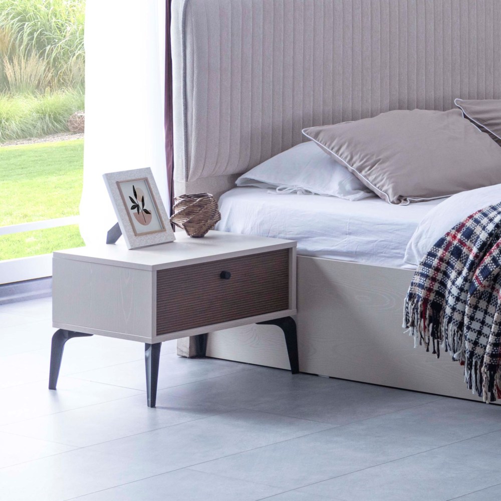 Projetada considerando as áreas que você vai precisar, a Mesa de Cabeceira Piedra cria uma área de armazenamento segura para todos os itens que você deseja manter na cabeceira. Combinando a sua estrutura sólida e funcional, bem como os detalhes texturizados das nervuras na sua superfície de madeira com tons quentes de creme, Piedra acrescenta profundidade ao seu design ao mesmo tempo que acrescenta um ambiente amigável à sua casa.