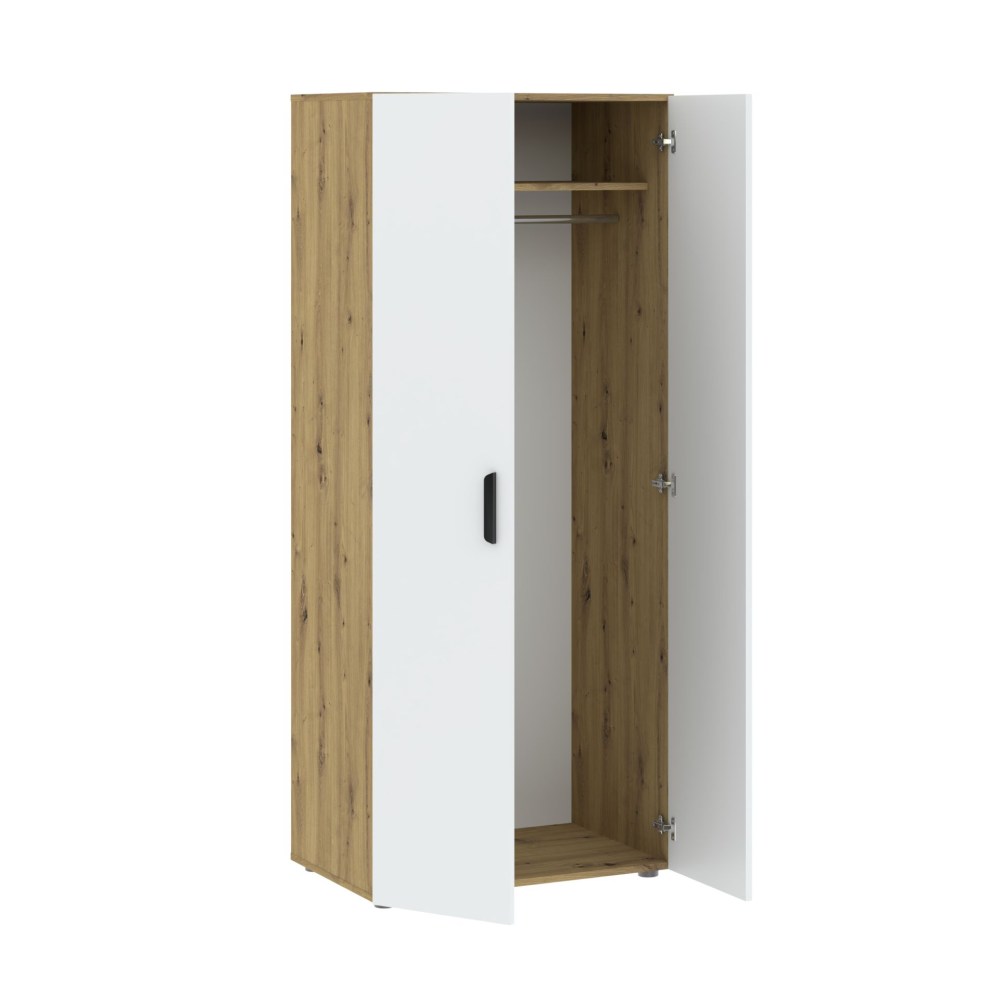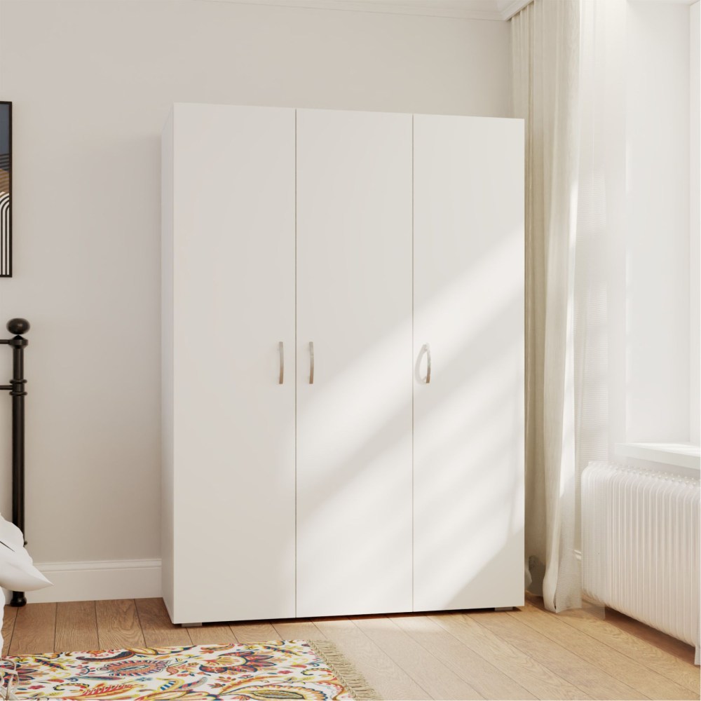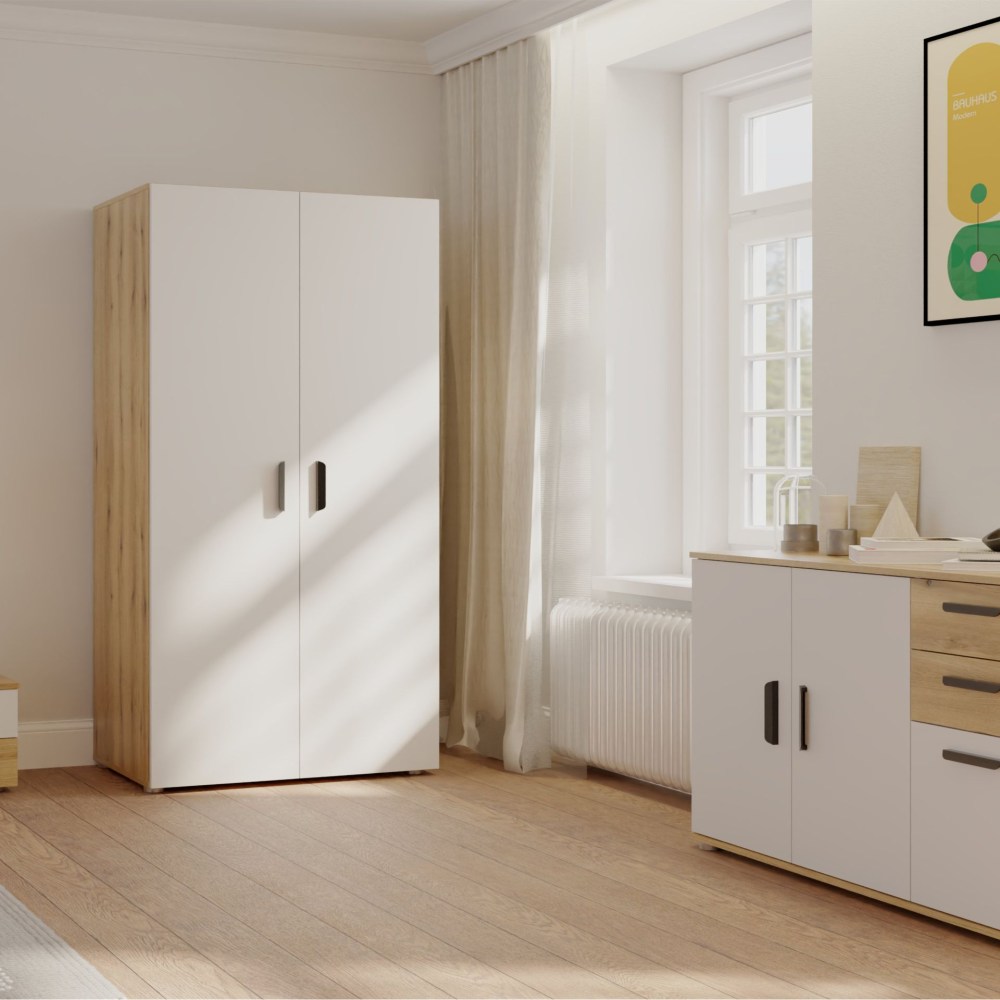 Com dimensões ideais de 112 cm de largura, 179 cm de altura e 52 cm de profundidade, é perfeito para quartos de diferentes tamanhos, oferecendo amplo espaço de arrumação sem comprometer a circulação do espaço. Os puxadores e pés em tom cinza conferem um toque moderno e elegante, complementando o design clean do móvel. Seja para guardar roupas, roupas de cama ou acessórios, o Roupeiro Basic é a escolha perfeita com estética e design. Transforme seu quarto com este roupeiro que une qualidade e um visual contemporâneo!