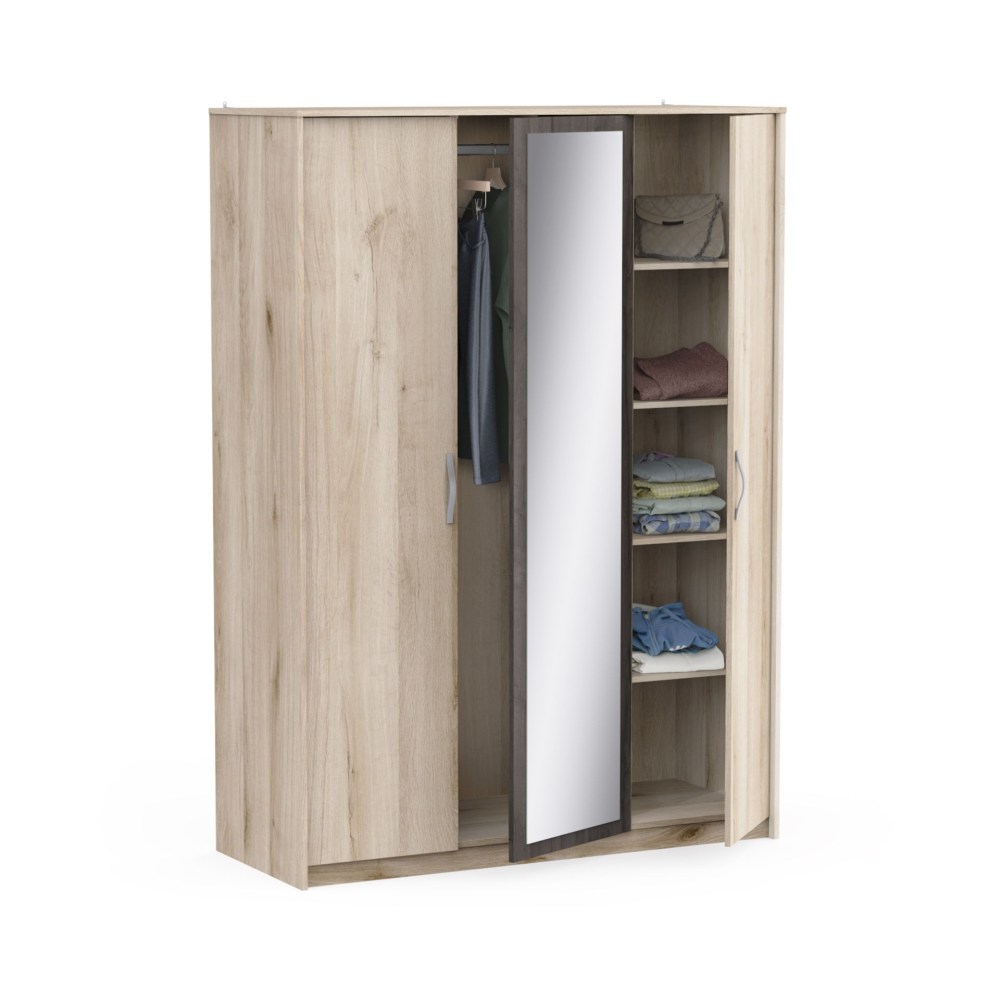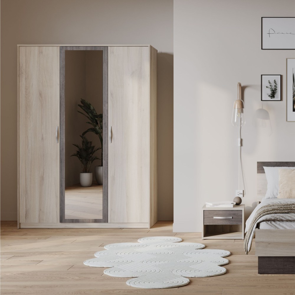 Opte pelo estilo e praticidade com o guarda-roupa  Graphic ! Suas portas em cores da moda escondem um guarda-roupa interior de 2/3 e 1/3 de linho modular para armazenamento ideal. Muito prático, seu grande espelho oferece luz e perspetiva ao seu interior